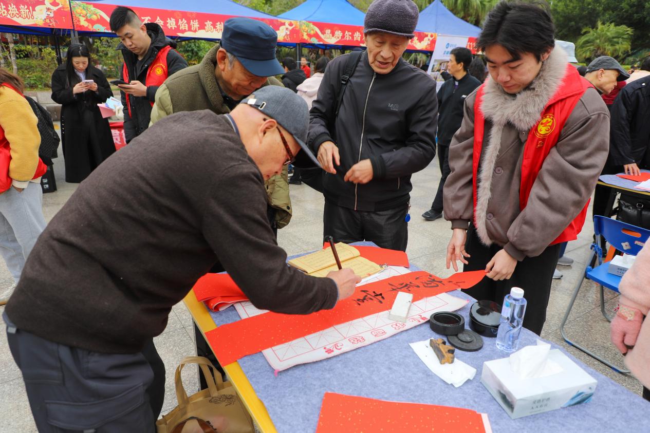 活动期间,各类文明实践服务同步推进。书法家现场书写春联、送“福”字,党员志愿者做好秩序引导和服务保障。社区警务室民警结合节前易发诈骗案例,开展反诈宣传,提醒群众增强防范意识,守护好自身财产安全。同时,义诊、理发、公益推拿以及普法、金融知识宣传等便民服务有序开展,受到群众欢迎。