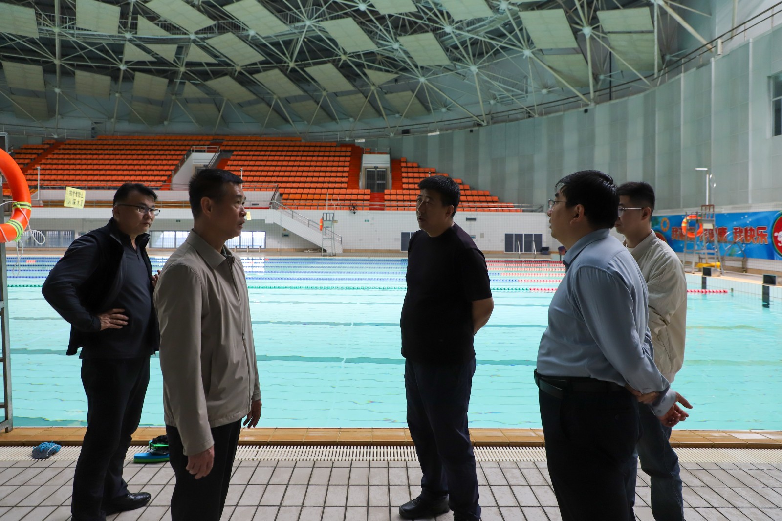 考察组先后实地参观体育场、体育馆、游泳馆等重点场馆,详细了解中心在智慧场馆建设、全民健身服务开展、安全生产及应急管理等方面的工作举措与实践成效。座谈会上,双方围绕场馆业态布局、多元化经营、运营提质增效等内容深入交流探讨,一致认为安全是体育场馆运营基石,应将安全理念全面融入场馆规划、建设与运营的每一个环节;体育场馆运营需兼顾公益属性与市场效能,在保障全民健身服务的基础上,探索多元盈利模式,激发场馆发展活力。